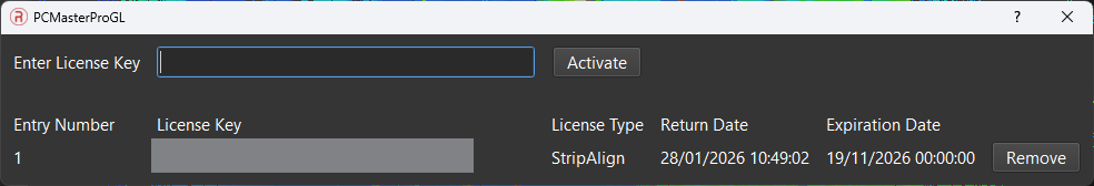 The license for Strip Align is activated in the same way as for SLAM, but the only difference is that the license type will be “StripAlign” as shown below.