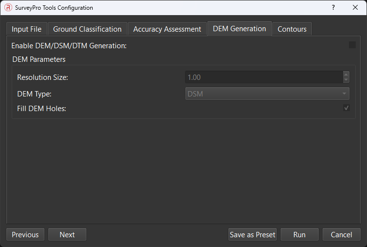 - DEM Type – choose between a DSM or DTM