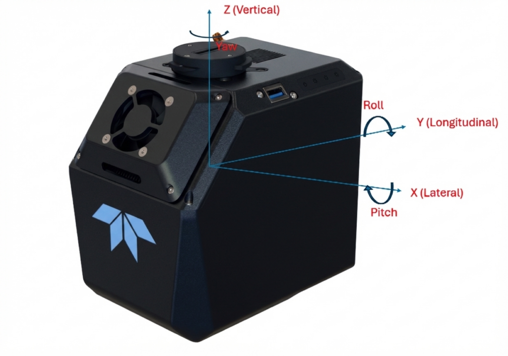 IMU Orientation: The coordinate axes of the IMU in the payload are consistent across all RESEPI and EchoONE units, though some units may be rotated. Review the orientation references for specific payloads, as shown below.