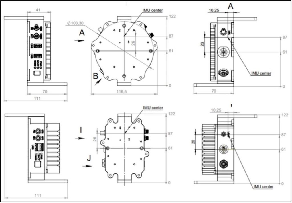 • Input the antenna’s location relative to the internal IMU using the provided orientation references, as shown in Figure 3. Measure the distance from the IMU to the antenna’s center, adjusting for any antenna positioning that is left, behind, or below the unit. Accurate values are crucial for missions as they influence real-time processing in RTK and recording for PPK. For the best data quality, ensure precision in these measurements.
