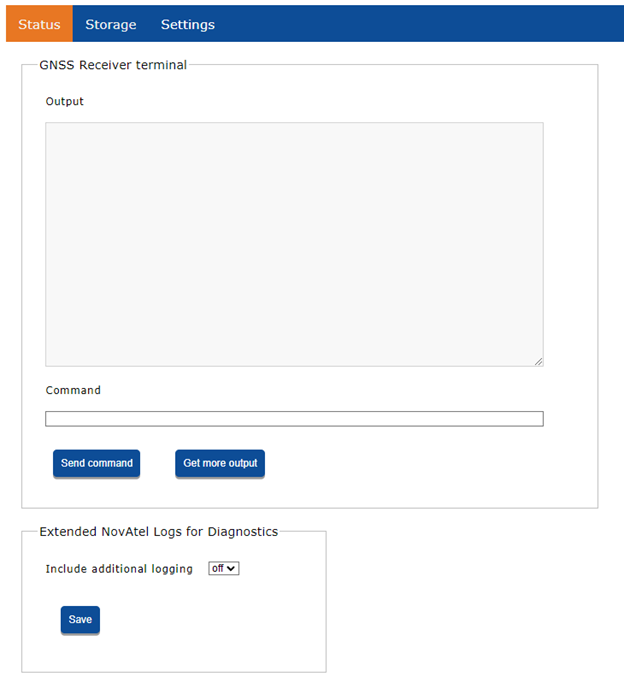 • From firmware version 4.2.0.0, request additional logs by enabling the Extended NovAtel logs for diagnostics option. This feature is useful for advanced troubleshooting but should be used only if advised by the manufacturer.