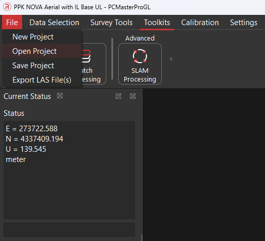 - To revert to normal PPK processing, select “Disabled” in the SLAM settings before opening an existing project.