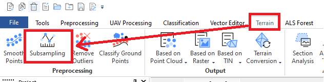 - To thin out, go to the “Terrain” tab and click on “Subsampling”, Figure 8.
