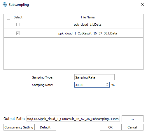 - Make sure that the correct point cloud is selected, then choose the appropriate thinning type and subsampling value from the drop-down list.