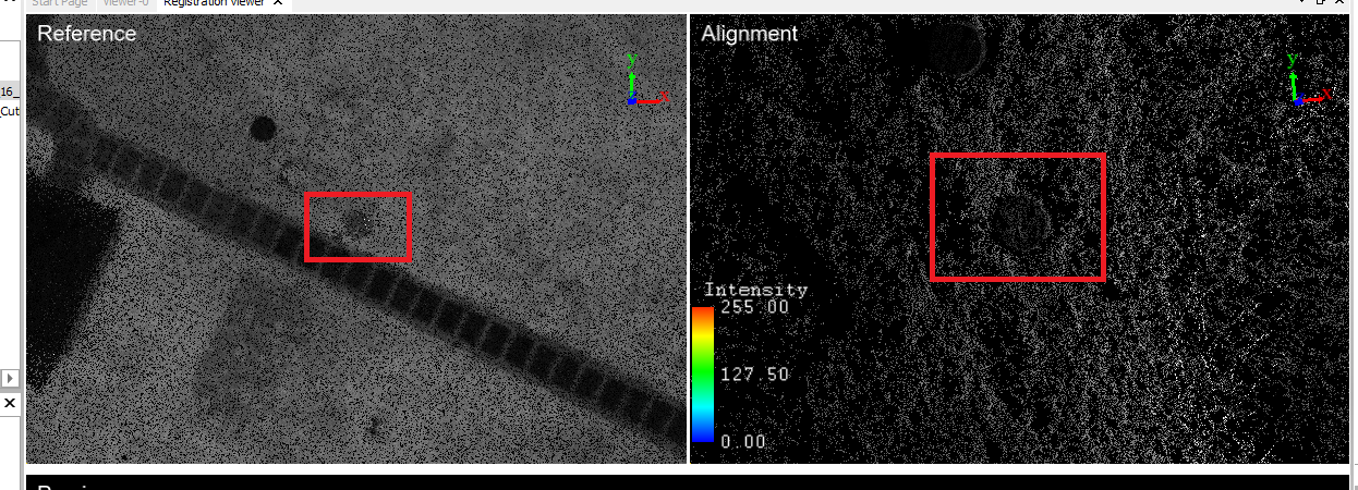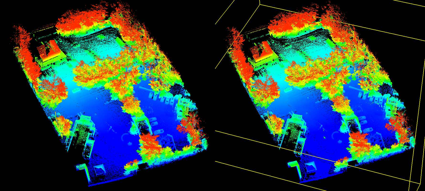 As you can see, the reference cloud is on the left, and the SLAM cloud is on the right.