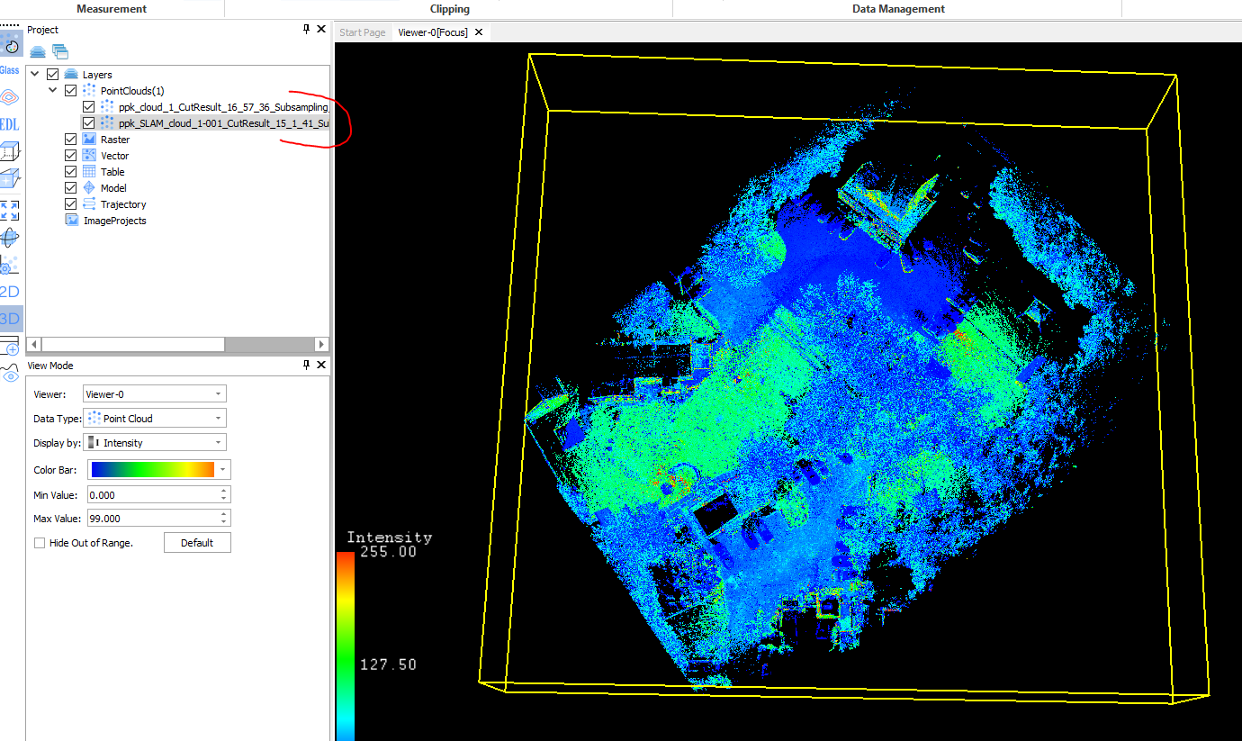 For convenience, we will leave only processed GNSS and SLAM point clouds in the layers panel, as shown in Figure 17.