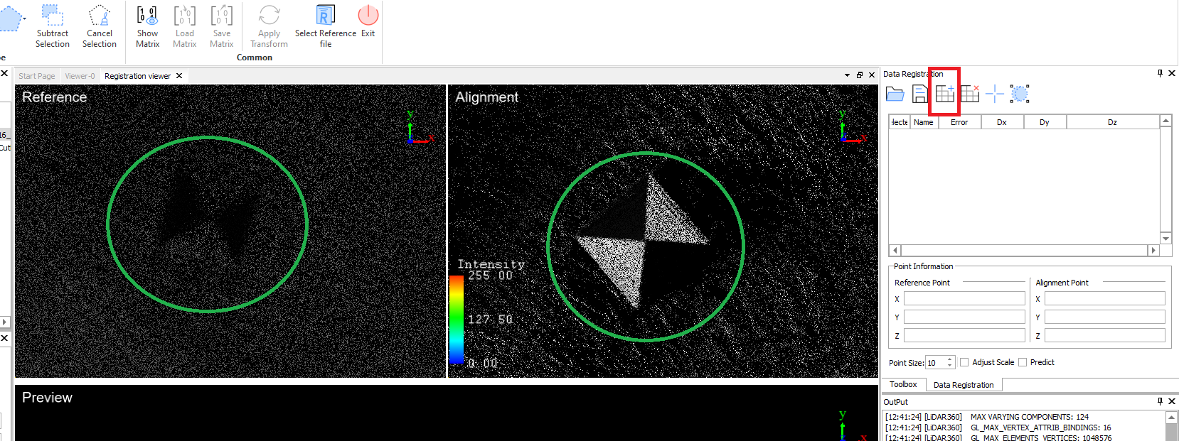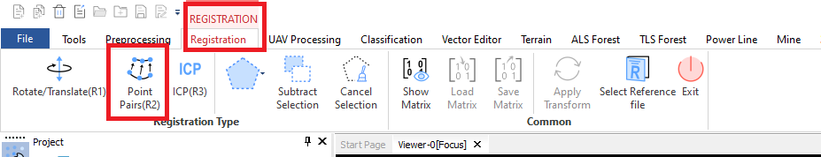 - In the toolbar, the “Registration” tab will be highlighted in red, and we will see tools for working with Data Registration. In this case, we are interested in “Point Pairs”, Figure 21. Click on the “Point Pairs” tool.