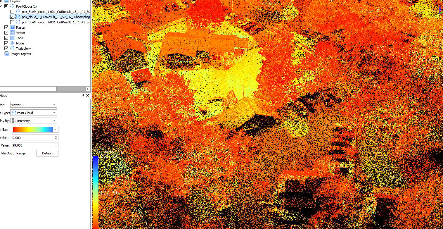 - In the same way as for the GNSS cloud, we load the SLAM cloud and cut off the excess, and thin out the data (if necessary).