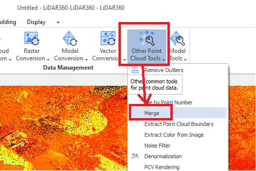 - In the “Data management” panel, click on “Other Point Cloud Tools” and select the “Merge” tool, Figure 34.