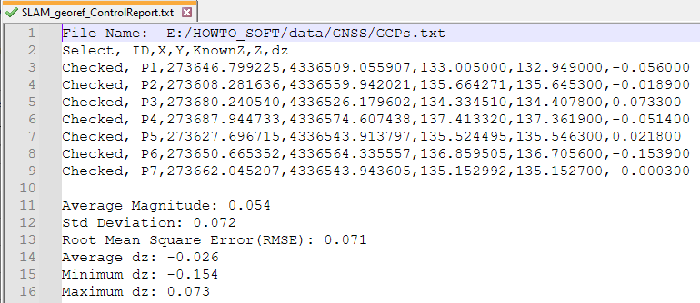 The report will contain information about the control points and the results of the calculated accuracy, as shown in Figure 42.