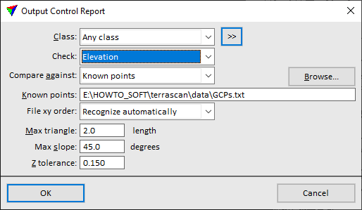 • The window shown in Figure 49 will open. Here you can enter the path to the file with the control points, select the class, the type of control (in this case height is selected), and the parameters to be calculated (we left them unchanged). Click “OK”.