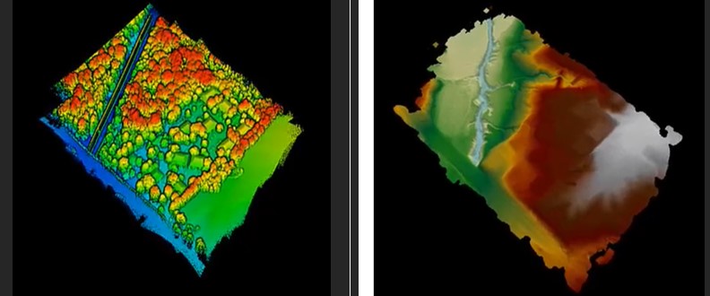 Figure 2. Point cloud (left) and digital terrain model (right).