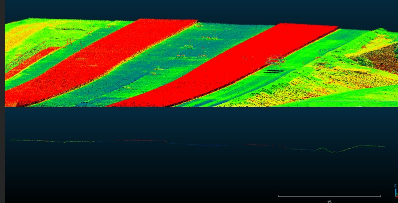 RESEPI Payload uses the best components, the user receives highly accurate georeferenced data. Just look at Figure 6, which shows a cross-section of the point cloud. A thin line of dots is visible in places where the object is a plane.